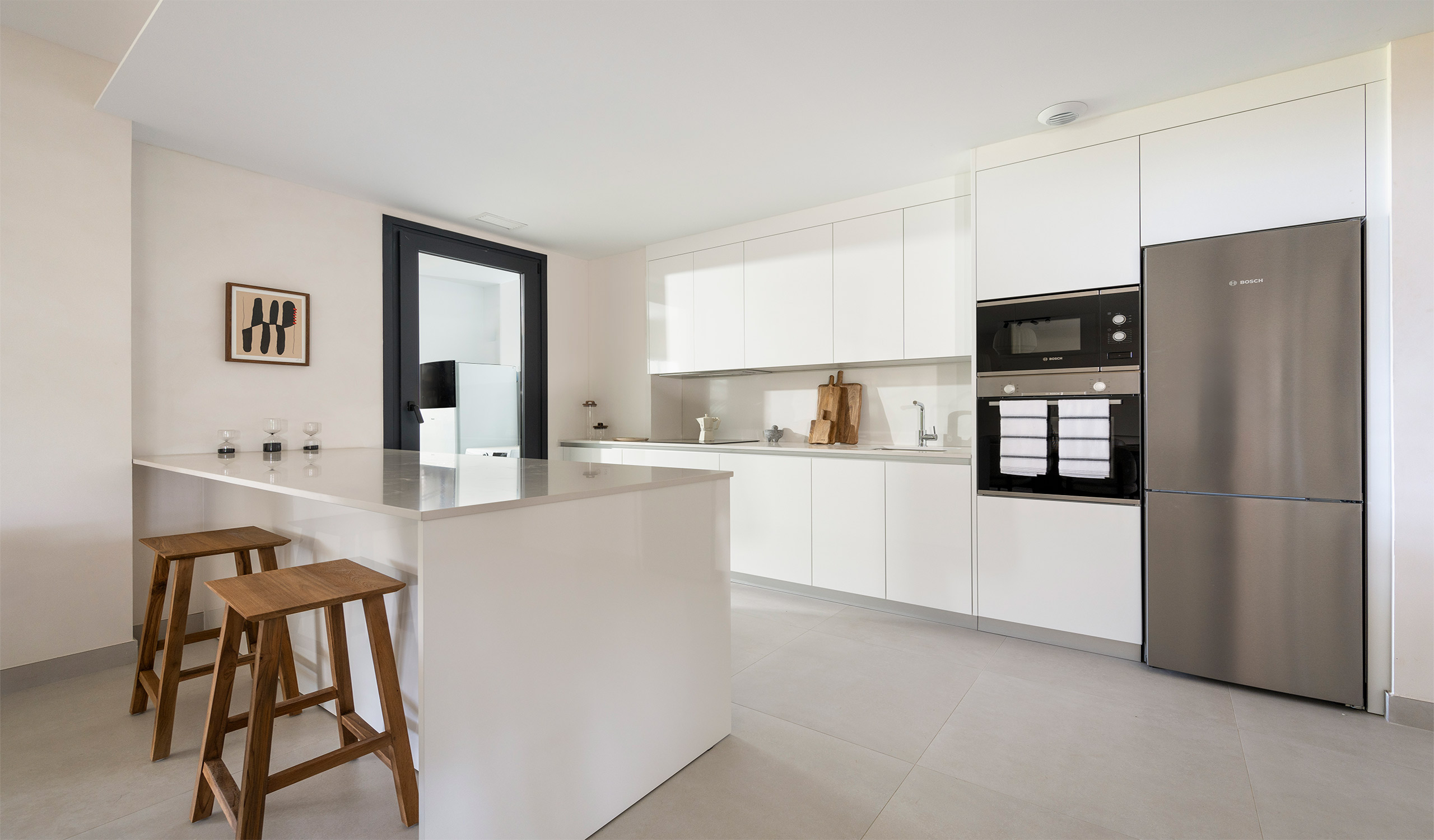 This development is located in Estepona, one of the most popular and prominent towns on the Costa del Sol. In the surrounding areas of this place are some of the most prestigious golf courses in Europe, the most complete offering of restaurants and hotels, fantastic beaches and exclusive commercial areas. The residential complex is characterised by its excellent travel links, as it's only 5 minutes by car from Estepona, 10 minutes from Puerto Banús and 20 from Marbella. Travel is easy by car, taxi or public transport as it's only 50 minutes (80 km) from the International Airport of Málaga, and 43 minutes (50 km) from the International Airport of Gibraltar. The development is made up of 6 three-storey blocks with: · Ground floor with a garden and possibility of a private pool · Middle floor · Penthouses with a solarium & terraces of 108m² All apartments come with a parking space. This is a residential complex with very refined architecture. It stands out for the elegance of its design, opting for white, which integrates it entirely into the Mediterranean environment without abandoning a contemporary image of clean and fluid lines. It has large, well-laid-out interior spaces with large glazing to ensure natural light. Light, climate and comfort combined in a top-quality development. The common areas have been designed to provide a space in which you can enjoy and relax, to break off from your routine and above all to increase the quality of life. You'll be able to choose between a dip in the pool, relaxing in the large garden, doing yoga, looking after yourself in the open-air gym... all within a safe and secure area. These are the details that make the difference.