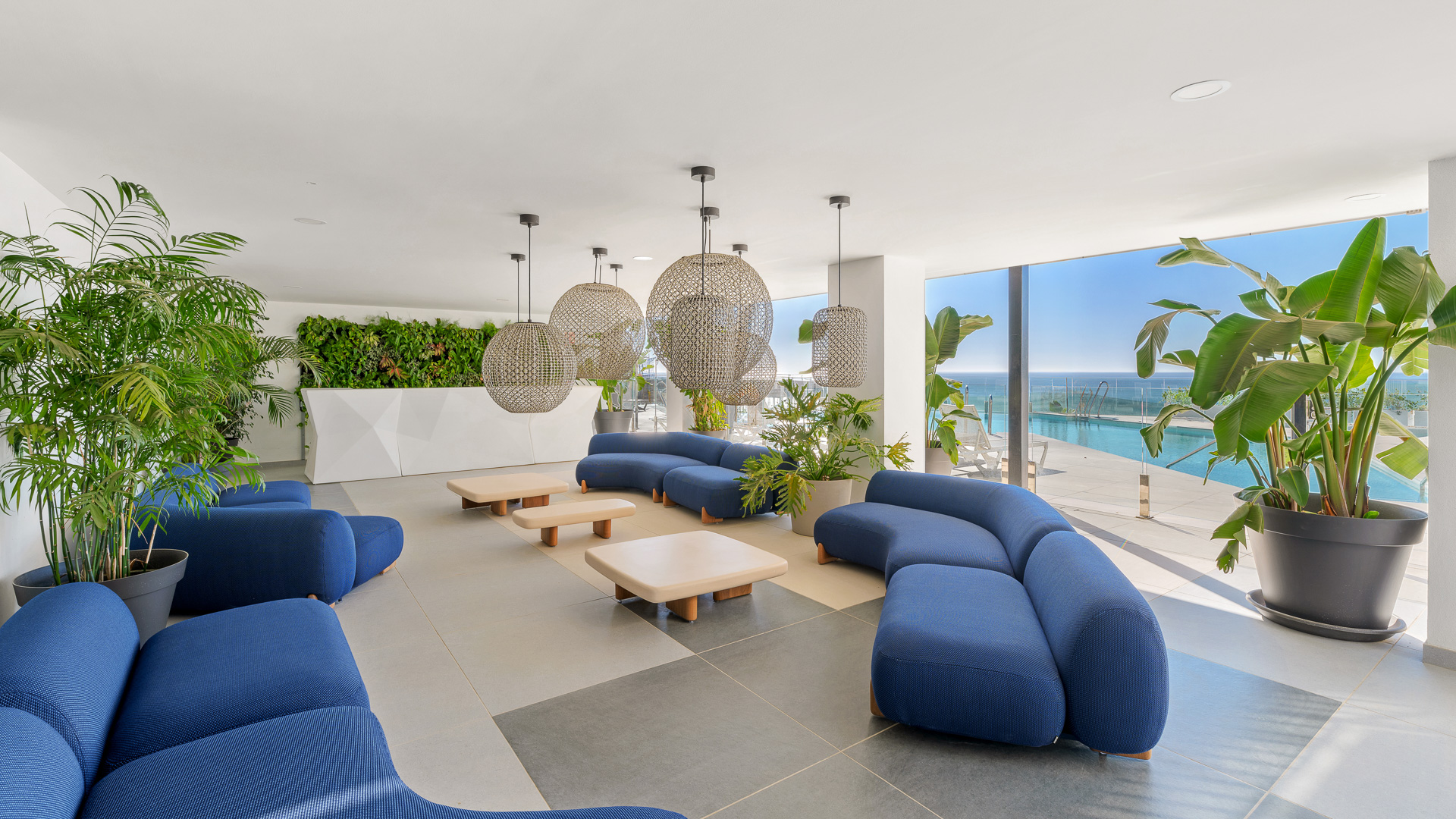 Estos espacios comunes se ubicarán en toda una planta del primer bloque. Aquí encontrarás la zona de coworking, sala de pilates, zona de gimnasio, sauna, baño turco, sala de masajes, zona de piscina climatizada, sala polivalente, bar con terraza exterior y una zona de relax cubierta junto a la piscina principal con 110m2 de superficie de agua.