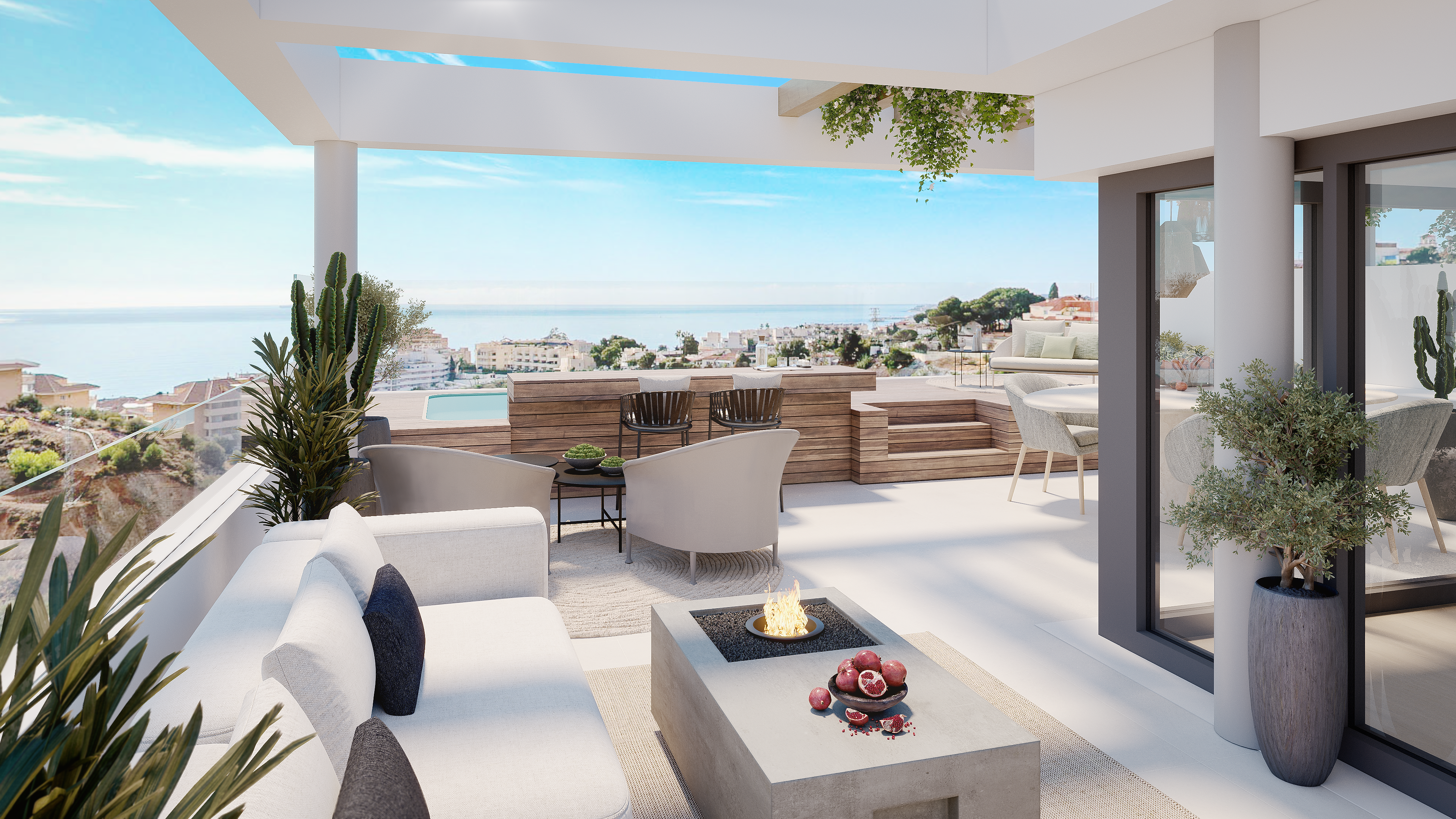 Un concepto de vida exclusivo que combina el lujo con la funcionalidad. Este proyecto inmobiliario se compone de tres elementos distintivos: las Garden Villas, Apartamentos y los Áticos Sky Solarium.Cada uno de estos ofrece una experiencia única de vida, pero comparten una serie de comodidades de primer nivel. Además del acceso controlado a la urbanización, las residencias incluyen garaje con trastero y piscina, así como exuberantes zonas verdes y ajardinadas que complementan perfectamente el entorno natural de El Higuerón.Las viviendas son testimonio del compromiso con la excelencia en diseño y calidad. Cada una está meticulosamente equipada con las mejores características y detalles para ofrecer un estilo de vida sofisticado y cómodo.Además, todas las terrazas disponen de jacuzzis privados para ofrecer un oasis de relajación con vistas panorámicas del Mar Mediterráneo.Este complejo ofrece un conjunto de comodidades y zonas comunes diseñadas para mejorar la calidad de vida de sus residentes.Un moderno gimnasio equipado con tecnología de vanguardia satisface todas las necesidades de fitness, mientras que una sauna y un spa con zona de contrastes ofrecen espacios para relajarse.La sala lounge es el lugar perfecto para disfrutar de reuniones con amigos y familiares, mientras que los espacios de coworking brindan un entorno inspirador para aquellos que trabajan desde casa.Amplias zonas ajardinadas y piscinas con solárium ofrecen espacios para relajarse y disfrutar del clima mediterráneo, completando así la experiencia de vida exclusiva que ofrece esta comunidad en la zona de El Higuerón.