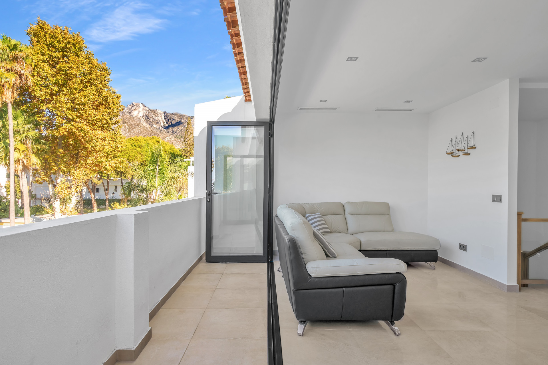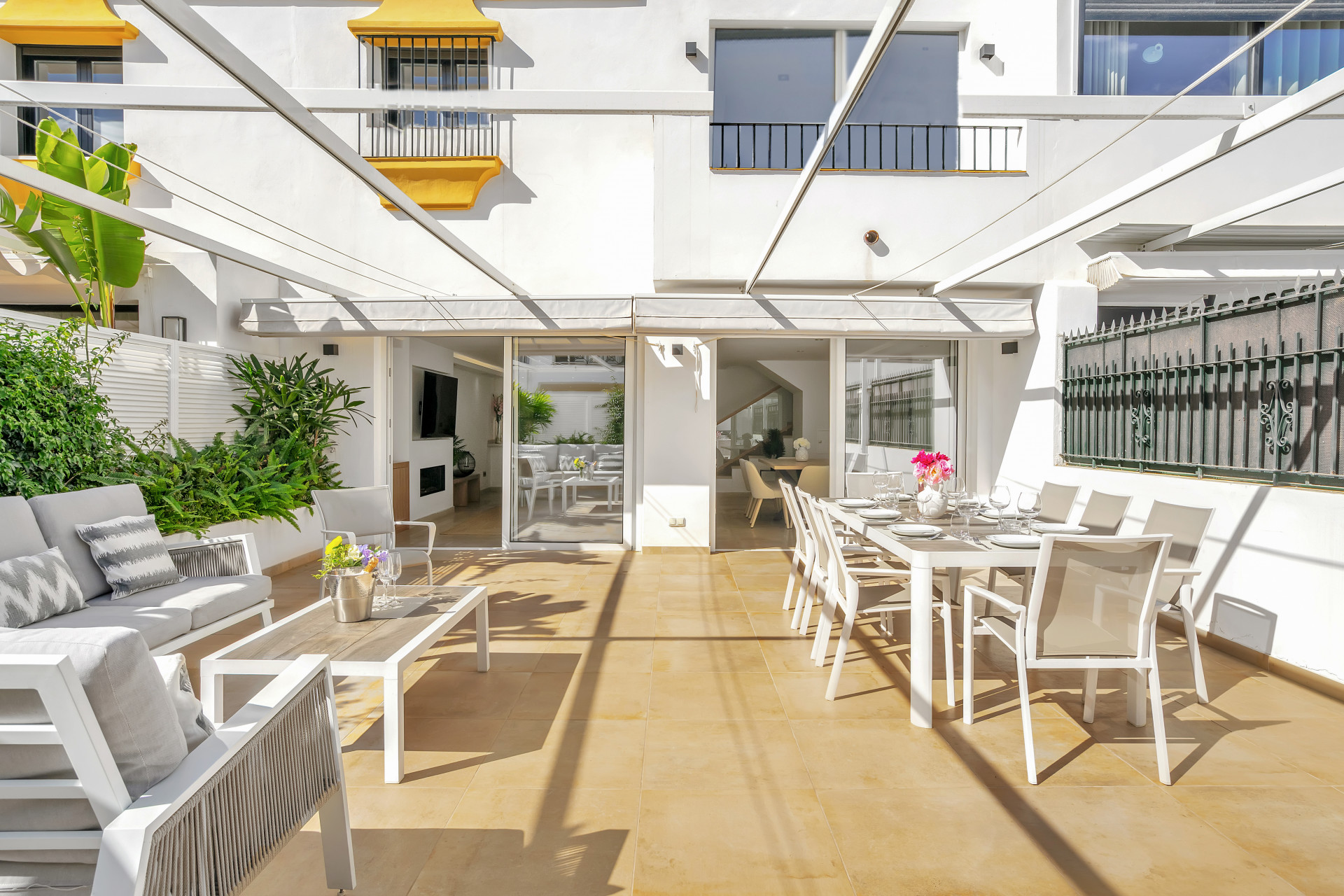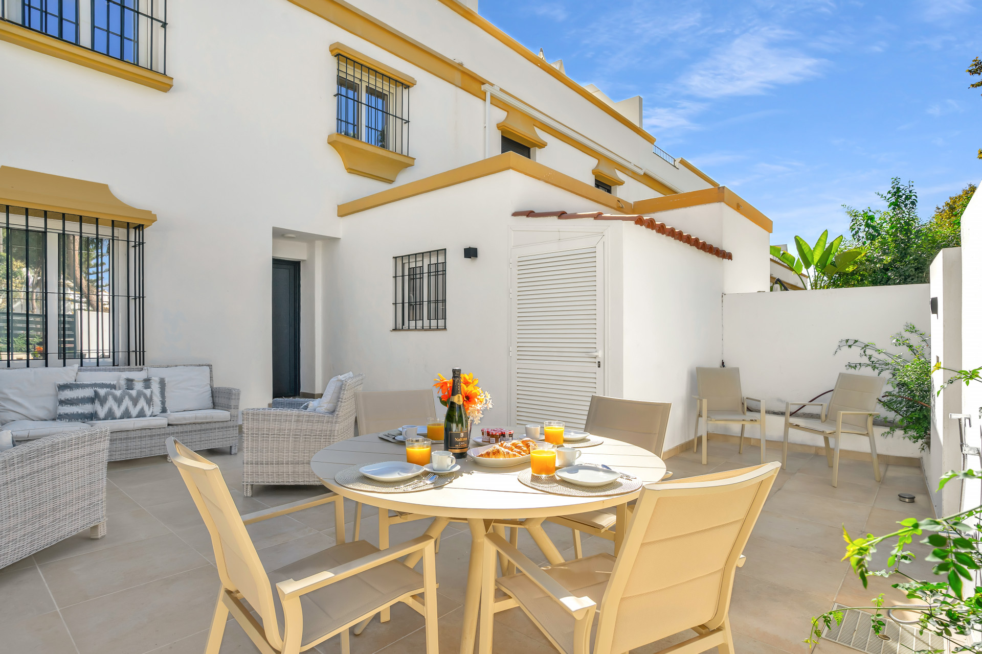 Casa Adriana is a beautiful modern townhouse newly reformed to the highest standards. It sits in a small community called Marbellamar, which borders a golden sandy beach in one of the most exclusive areas in the whole of Europe; Marbella’s famous Golden Mile. Here you can spend warm relaxing days by the sea, or rub shoulders with the rich and famous depending on your mood.