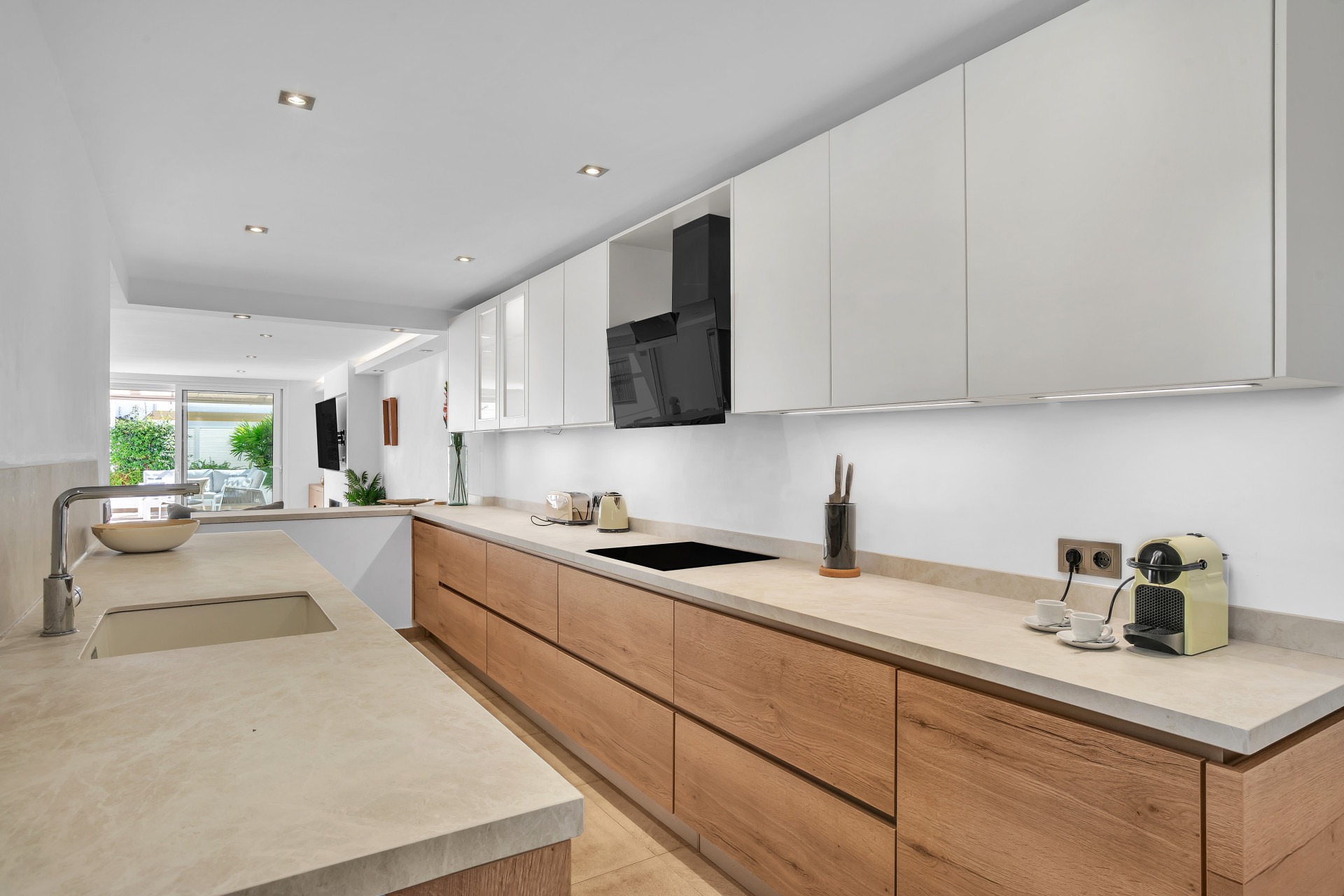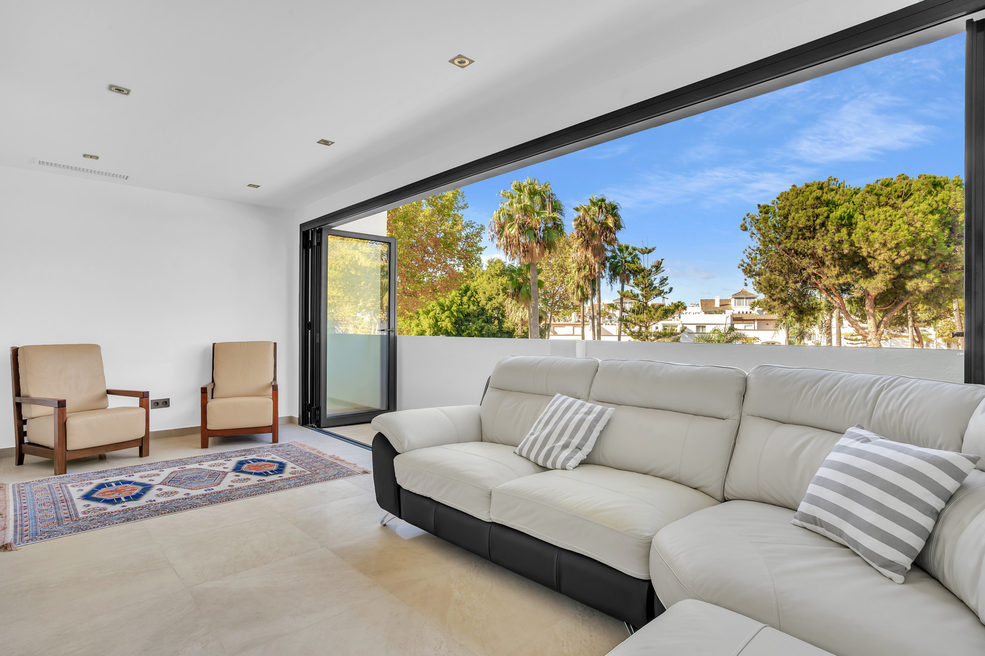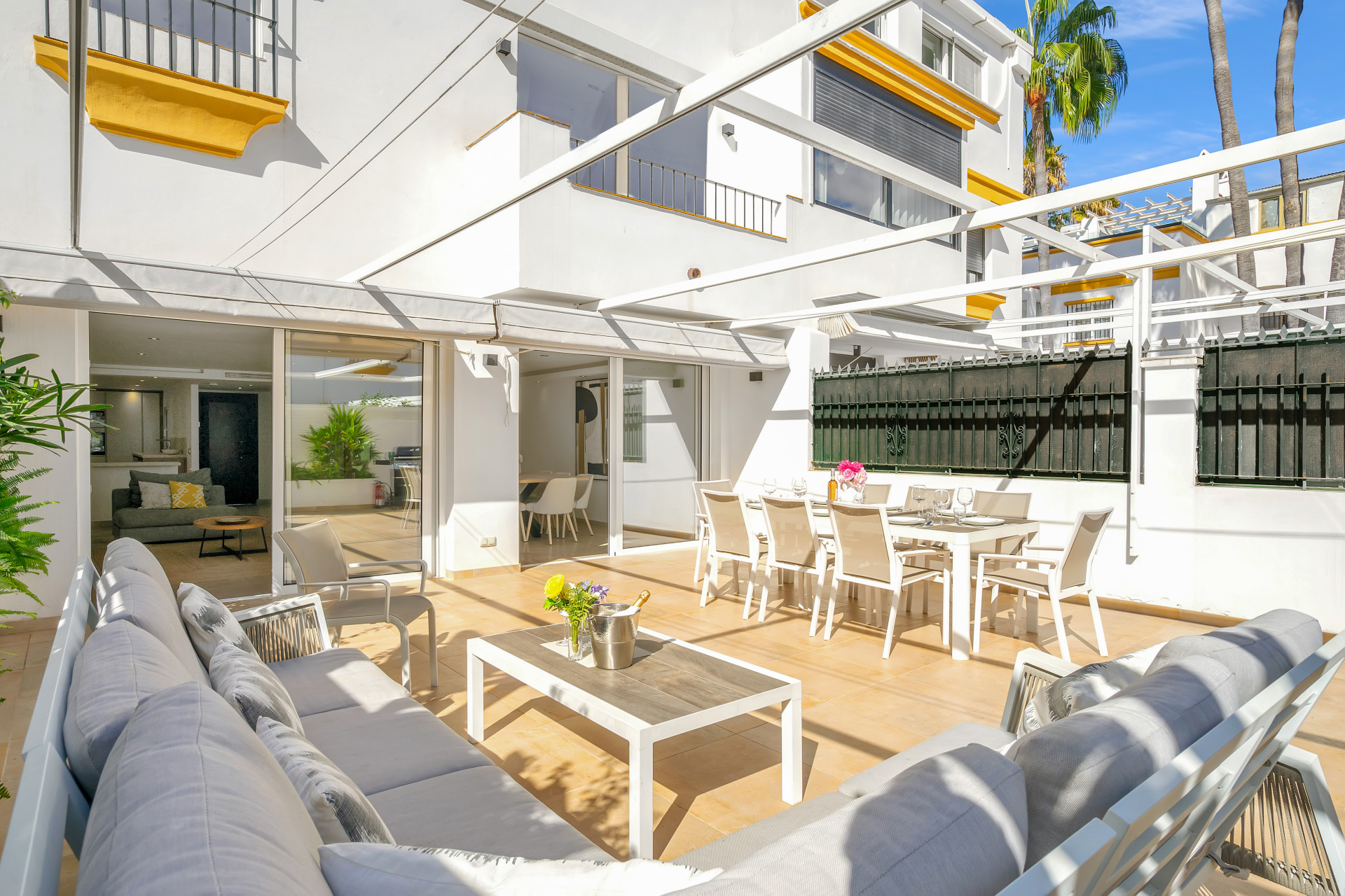 Casa Adriana is a beautiful modern townhouse newly reformed to the highest standards. It sits in a small community called Marbellamar, which borders a golden sandy beach in one of the most exclusive areas in the whole of Europe; Marbella’s famous Golden Mile. Here you can spend warm relaxing days by the sea, or rub shoulders with the rich and famous depending on your mood.