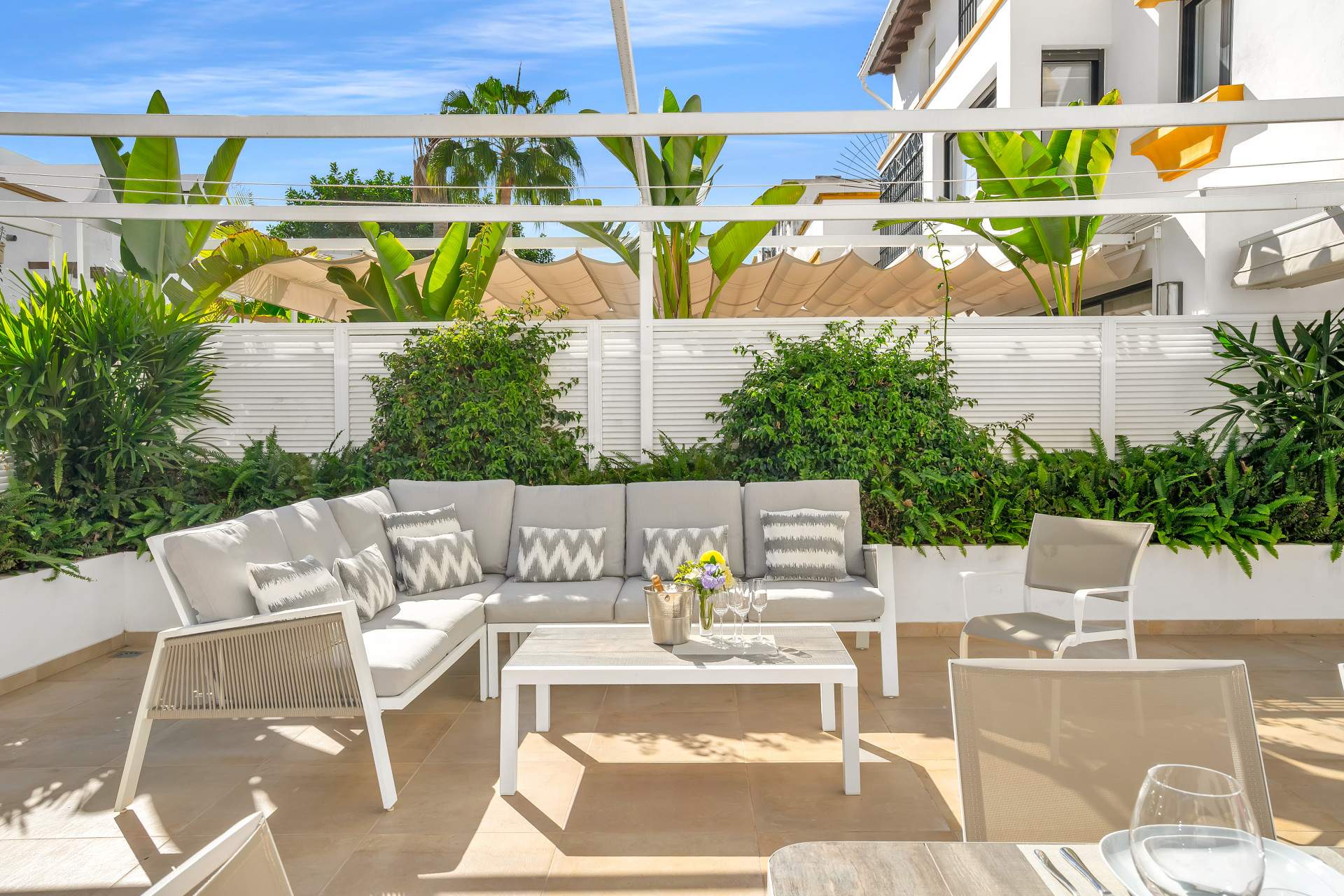 Just 100 meters from sandy Casablanca beach and surrounded by celebrity hang outs and some of the most exclusive real estate in the world, you can easily walk (or jog, blade or cycle) along the Paseo Maritimo (Beachside Walkway) from Casa Adriana east to the old town of Marbella with its' traditional bars and restaurants and within a few hundred meters to the west is the world famous Marbella Club. A little further on is the Puente Romano Resort, boasting an array of top quality bars and restaurants (three of which have Michelin stars) and attracting glamourous international clientele. The world famous Puerto Banus, the hang out of the rich and famous with it’s superyachts, glamorous boutiques and fabulous nightlife is a little way further on.